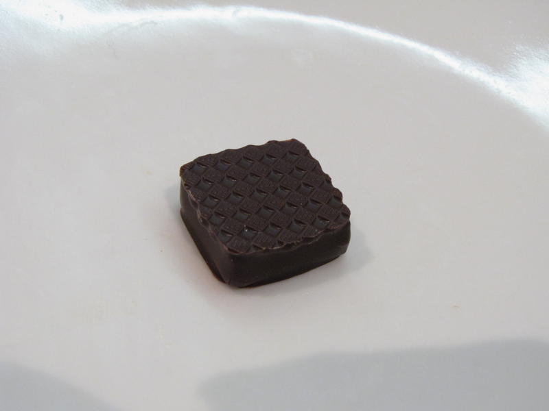 Notre dégustation commence à l’inverse de nos habitudes, par une tarte chocolat et une tarte caramel, miel et noix, puis un chocolat chaud. Vient seulement après la dégustation des ganaches, petits carrés de 5g parfaitement enrobés. Malgré le nombre surprenant (10 bonbons) sans eau ni pain entre chacun, entrecoupé par une pâte de fruits, parfumée à la fraise, banane, melon, griotte-eucalyptus, framboise-rose et la liste est encore longue, des caramels, noix de pécan, macadamia, nous sommes surpris par la facilité à déguster autant de merveilles sans arriver à saturation.